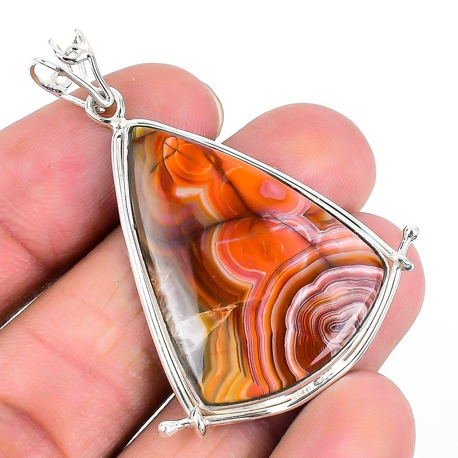 Laguna Lace Agate Stone Bezel Daughters Day Artisan Wedding Pendant Solid Silver