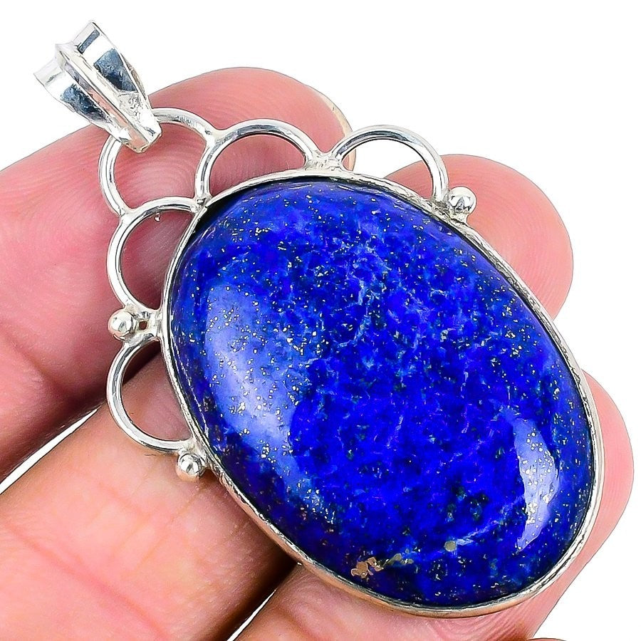 Lapis Lazuli Gemstone 925 Sterling Silver Mother Bezel Daughters Day New Pendant