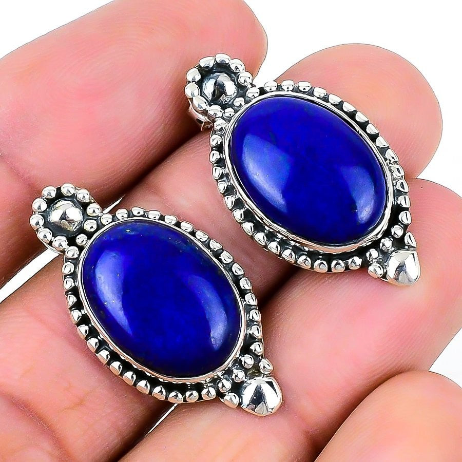 Lapis Lazuli Gemstone September Drop Dangle Earrings Jewelry 925 Sterling Silver