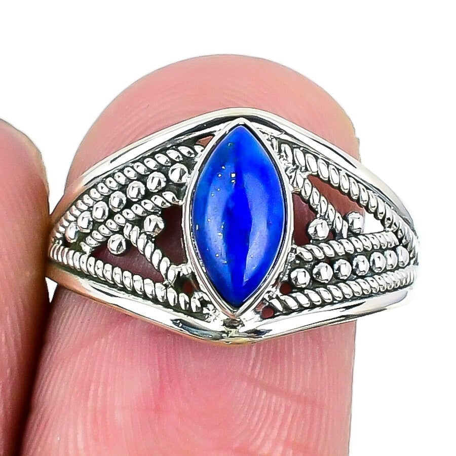 Lapis Lazuli Gemstone Solid Silver Art Deco Handcrafted Boho Cluster Ring Size 8