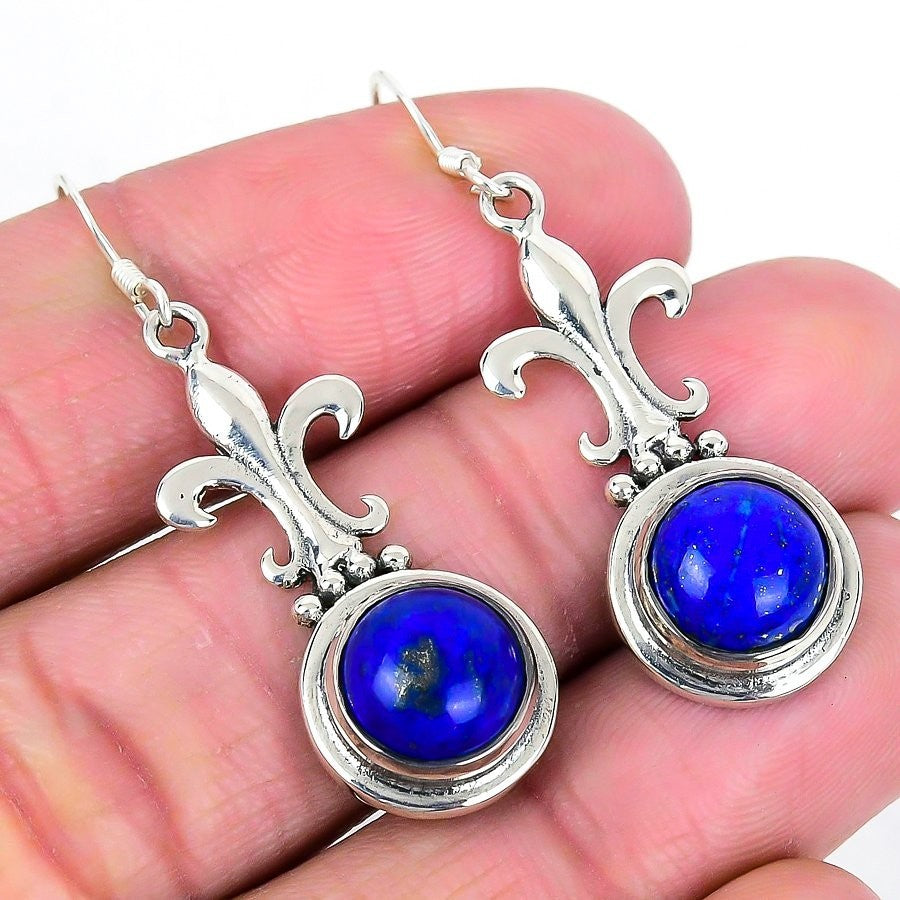 Lapis Lazuli Gemstone Solid Silver September Birth Dangle Drop Earrings Jewelry