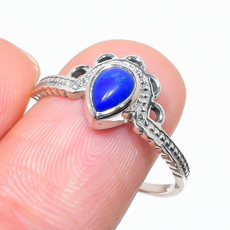 Lapis Lazuli Gemstone Sterling Silver Cluster Boho Engagement Wife Ring Size 10