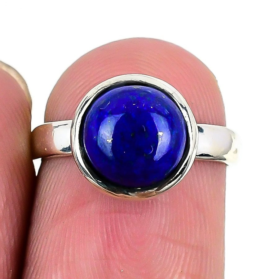 Lapis Lazuli Stone 925 Silver Bezel Statement Handcrafted Ring Jewelry Size 5.5
