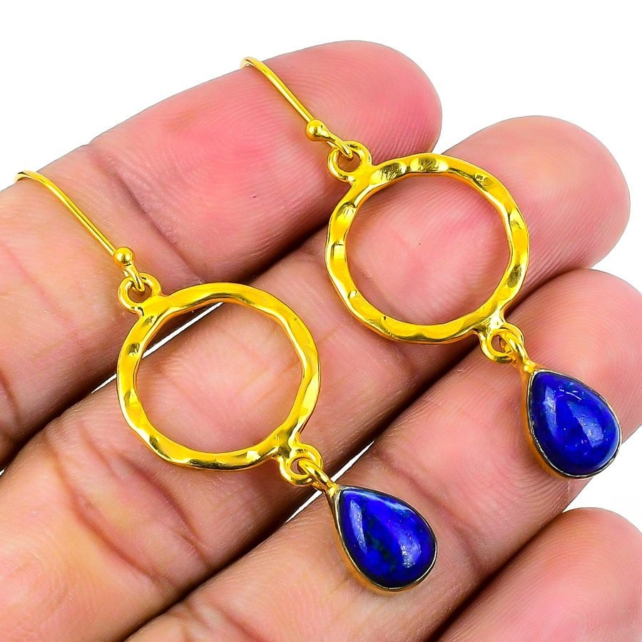 Lapis Lazuli Stone 925 Silver Birthday Artisan Dangle Unique Hook Wife Earrings
