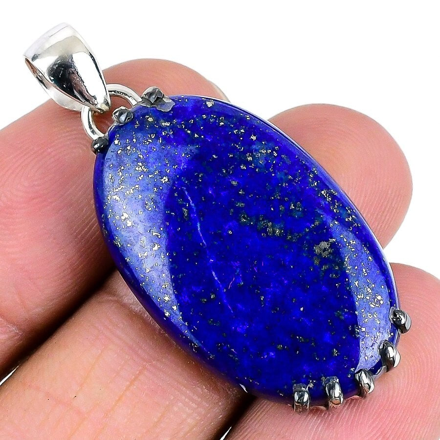 Lapis Lazuli Stone 925 Solid Silver Bezel Wife Art Deco Birthday Pendant Jewelry