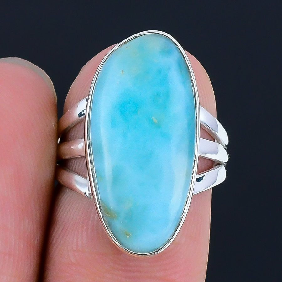 Larimar Gemstone 925 Solid Silver Wedding Statement Birthday Ring Jewelry US 6