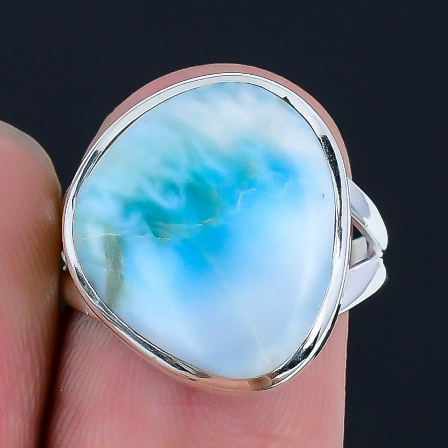 Larimar Gemstone Anniversary Statement Daughters Day Ring Size 7 Solid Silver
