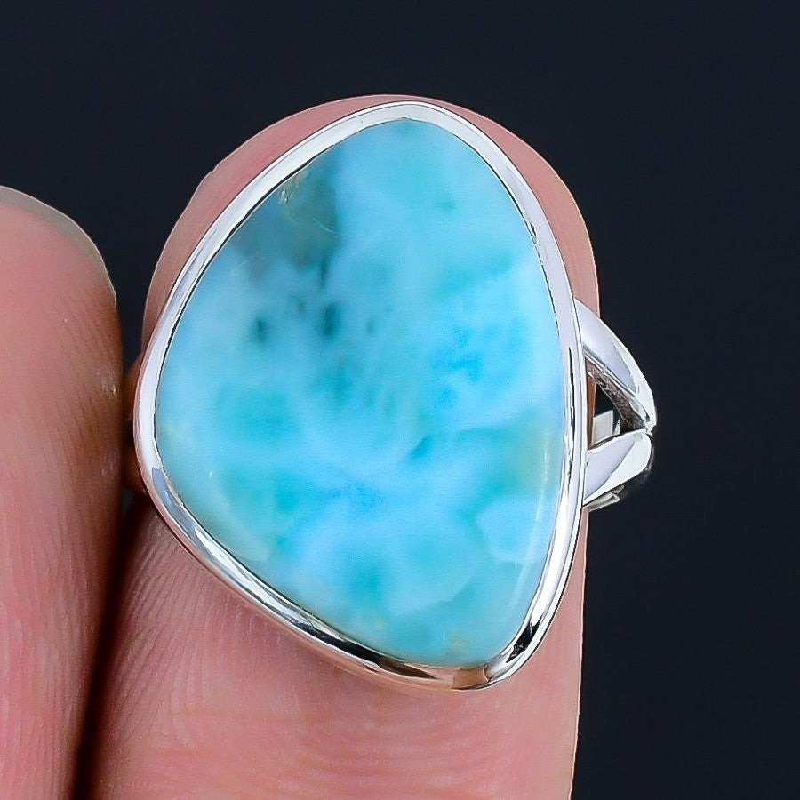 Larimar Gemstone Ethnic Statement Boho Ring Jewelry Size 7 Solid Sterling Silver
