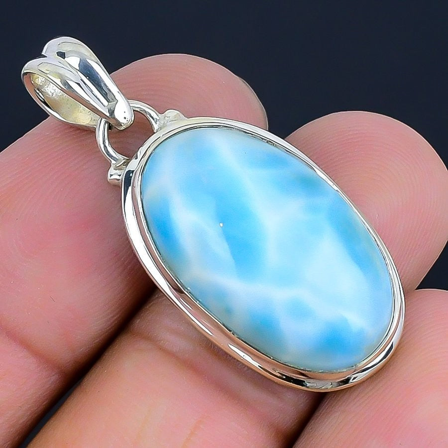 Larimar Gemstone Solid Silver Wife Daughters Day Unique Throat Chakra Pendant