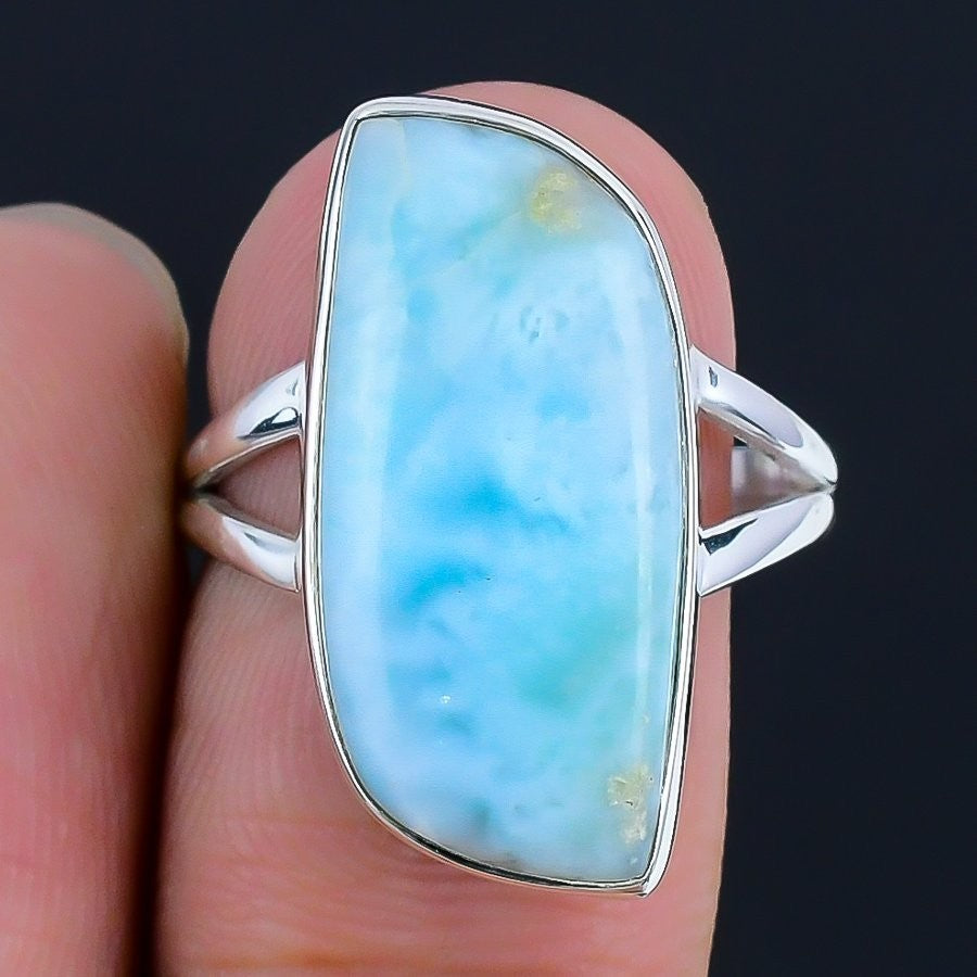 Larimar Gemstone Statement Daughters Day Bezel Birthday Ring Size 8 Solid Silver