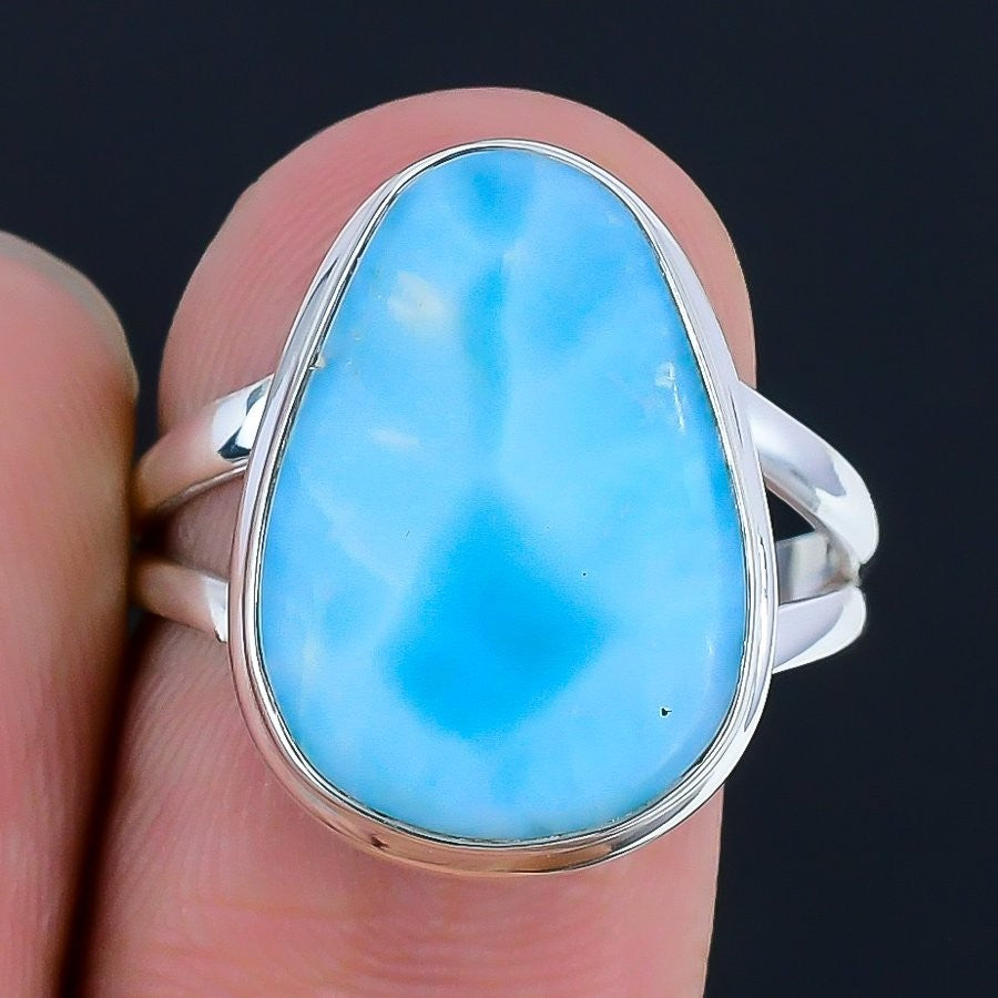 Larimar Gemstone Statement Wedding Bezel Throat Chakra Ring Sterling Silver US 9