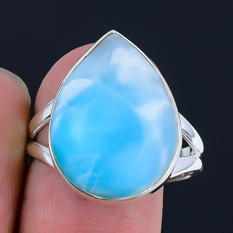 Larimar Gemstone Sterling Silver Bezel New Statement Daughter Ring Jewelry US 10