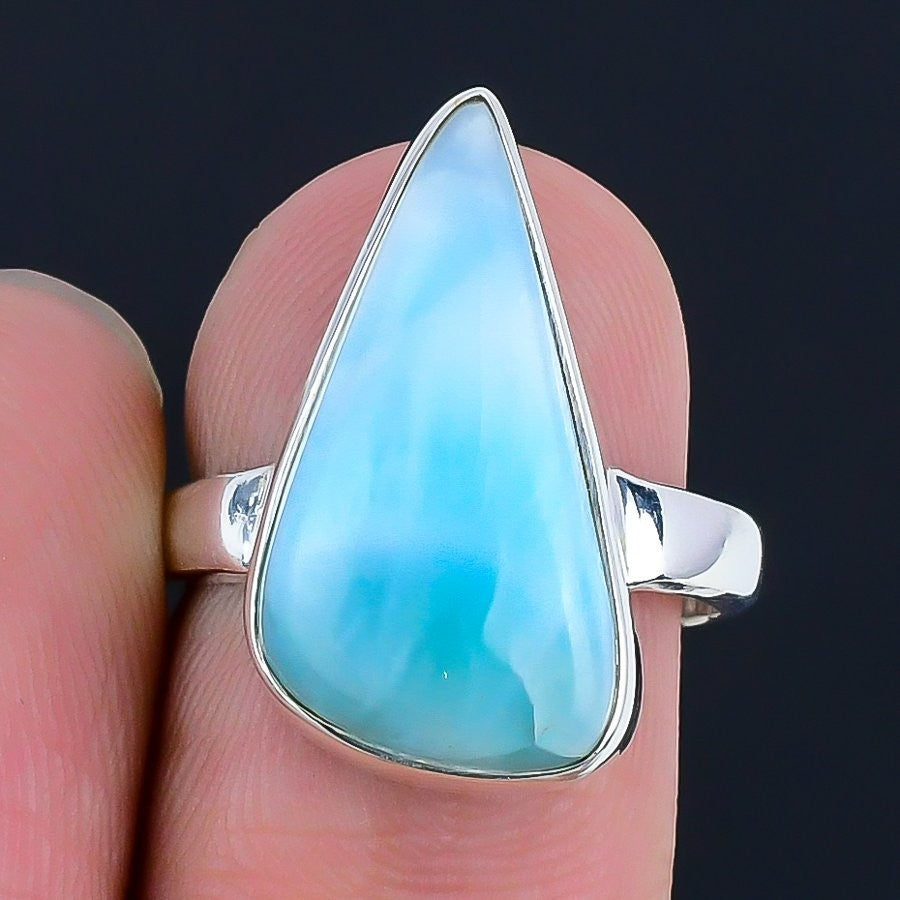 Larimar Gemstone Sterling Silver Daughter Statement Bezel Boho Ring Jewelry US 7