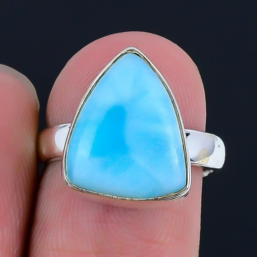 Larimar Stone 925 Silver Artisan Statement Bezel Handcrafted Birthday Ring US 7