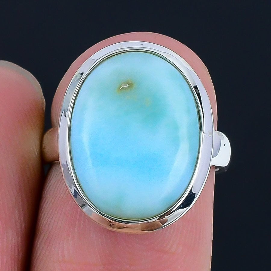 Larimar Stone Sterling Silver Sisters Day Wife Statement Throat Chakra Ring US 6