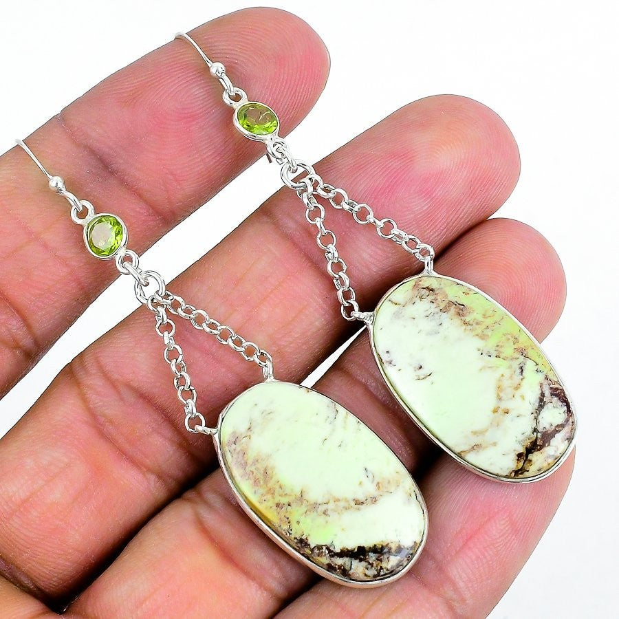 Lemon Chrysoprase Gemstone 925 Solid Silver Ethnic Dangle Drop Earrings Jewelry