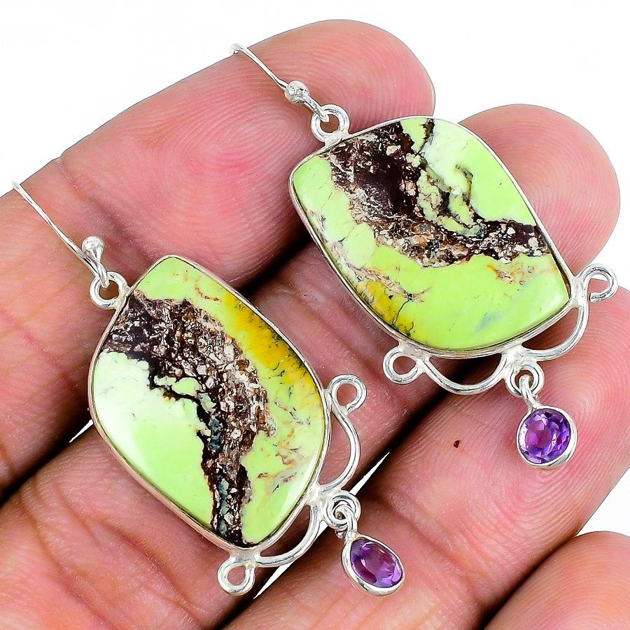 Lemon Chrysoprase Gemstone Sterling Silver Birthday Dangle Drop Earrings Jewelry