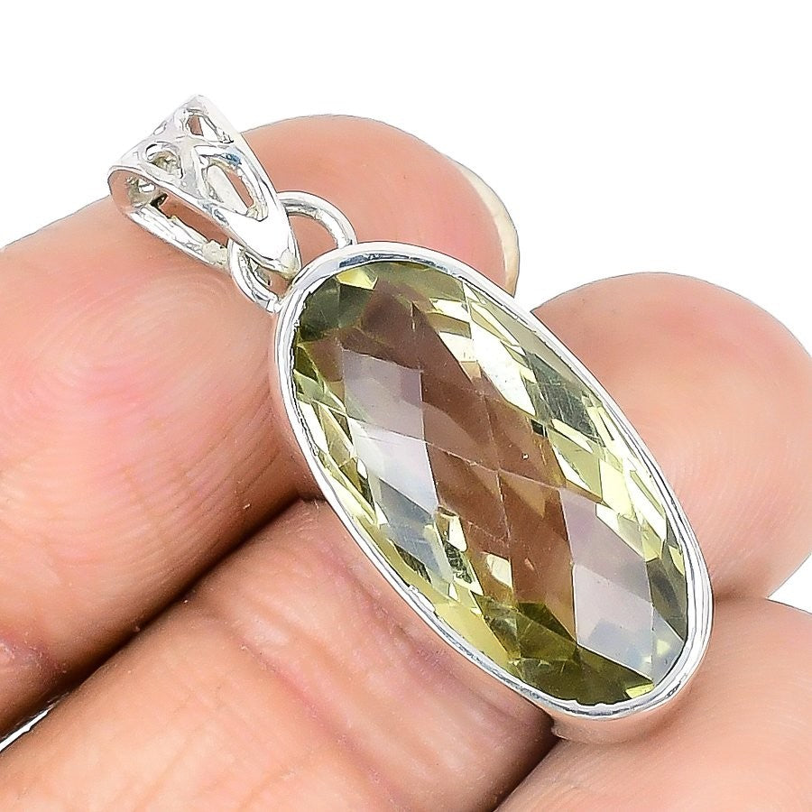 Lemon Topaz Faceted Gemstone Trendy Solar Chakra Art Deco Pendant Solid Silver