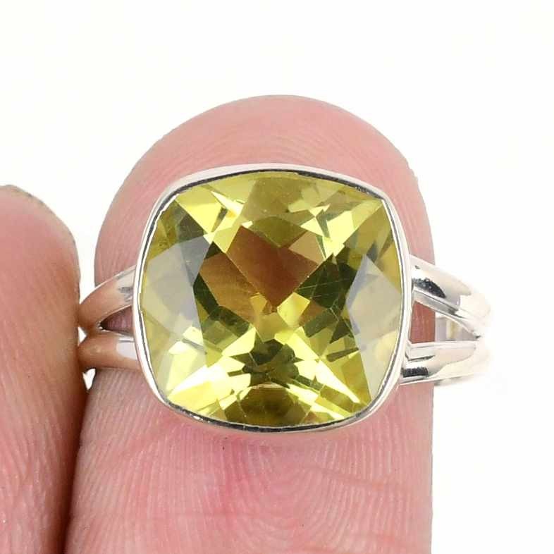 Lemon Topaz Gemstone 925 Solid Silver Daughters Day Cluster Artisan Ring Size 8