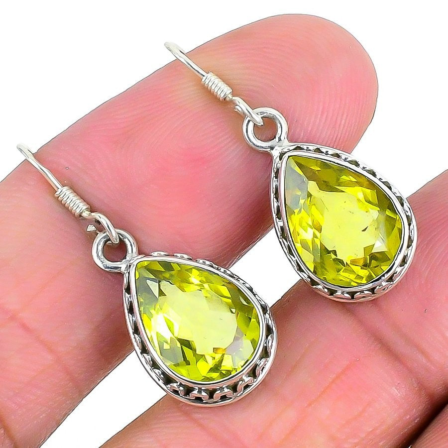 Lemon Topaz Gemstone Handmade Mother Art Deco Boho Drop Earrings Sterling Silver