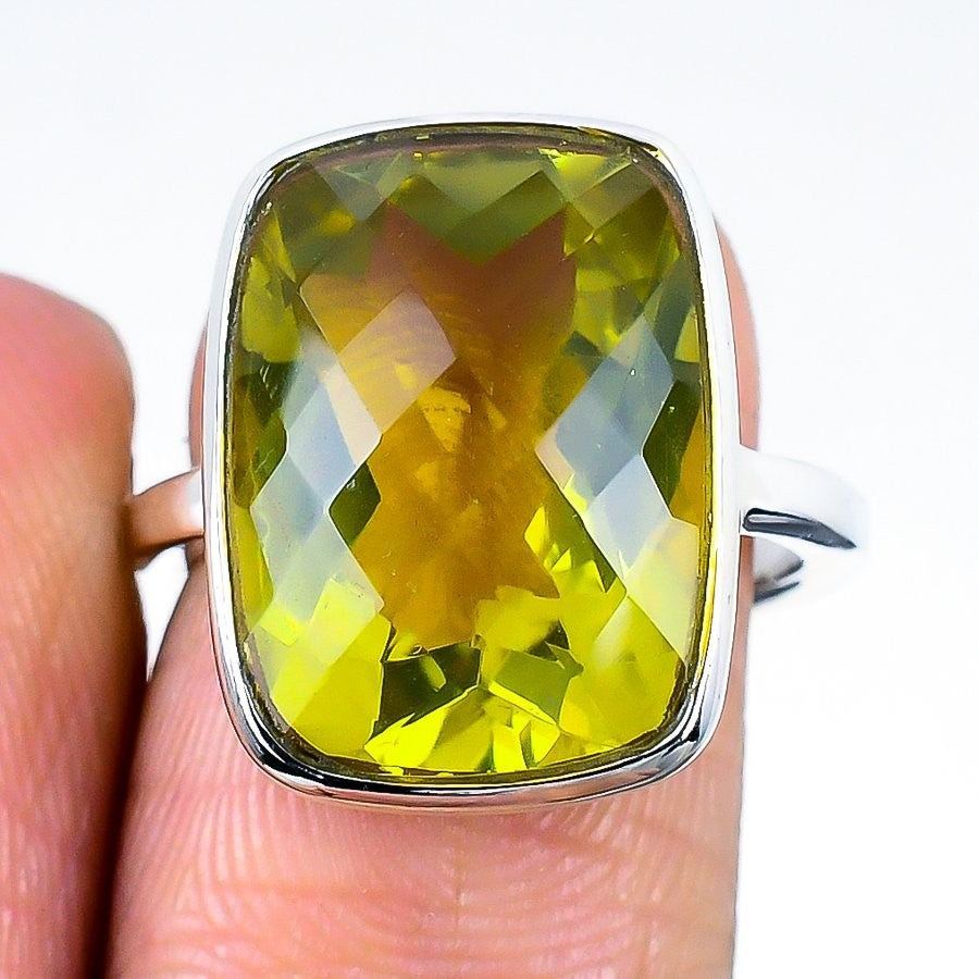 Lemon Topaz Stone Solid Silver Statement Band Best Daughters Gift Ring Size 6
