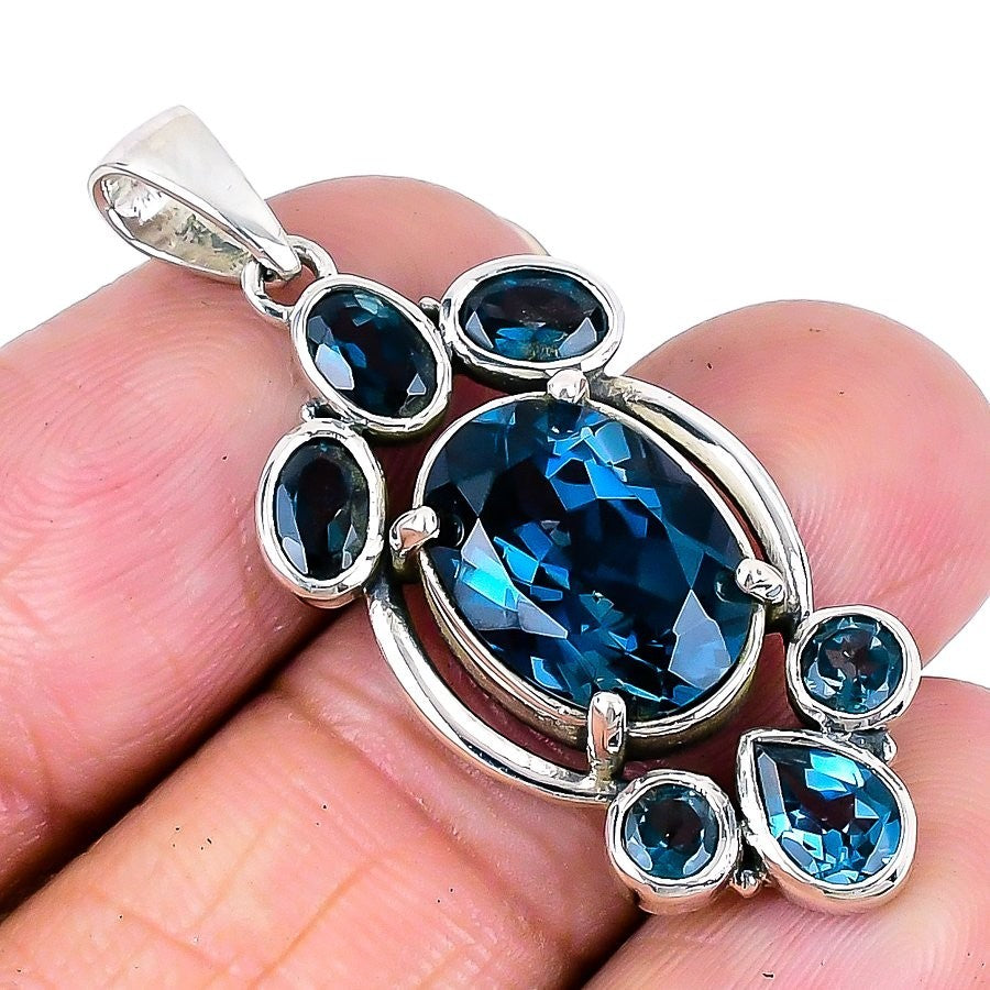 London Blue Topaz Faceted Stone 925 Sterling Silver Birthday Engagement Pendant