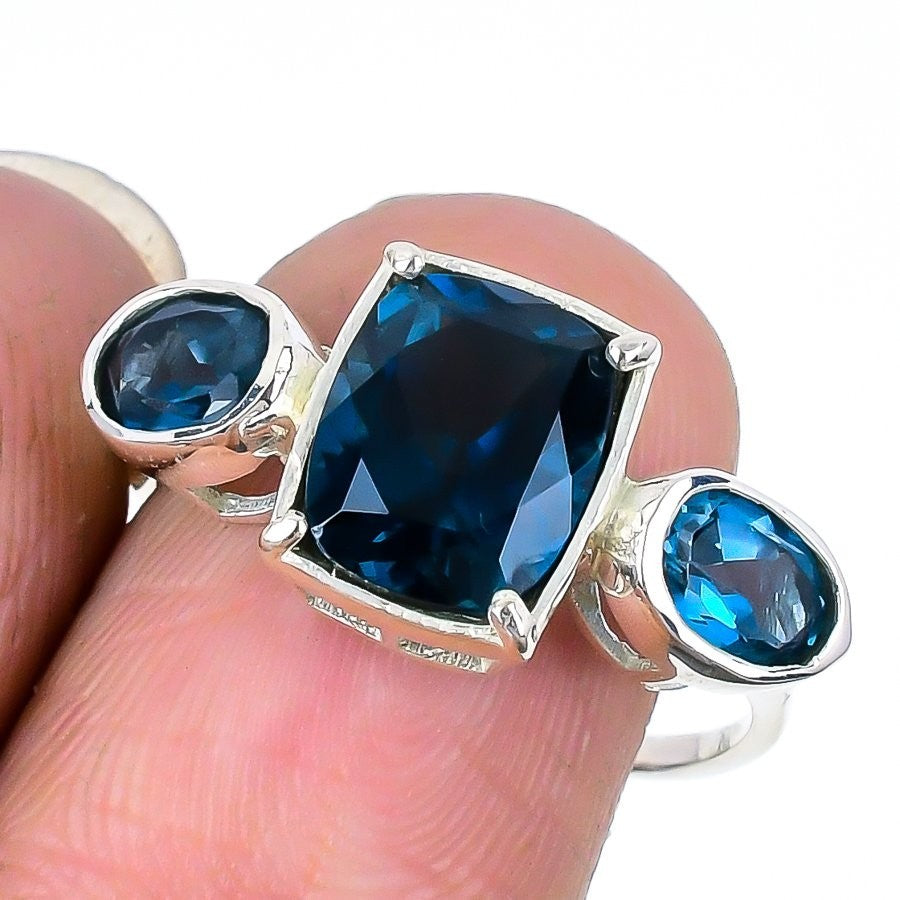 London Blue Topaz Stone Unique Statement Sister New Ring Sterling Silver US 9