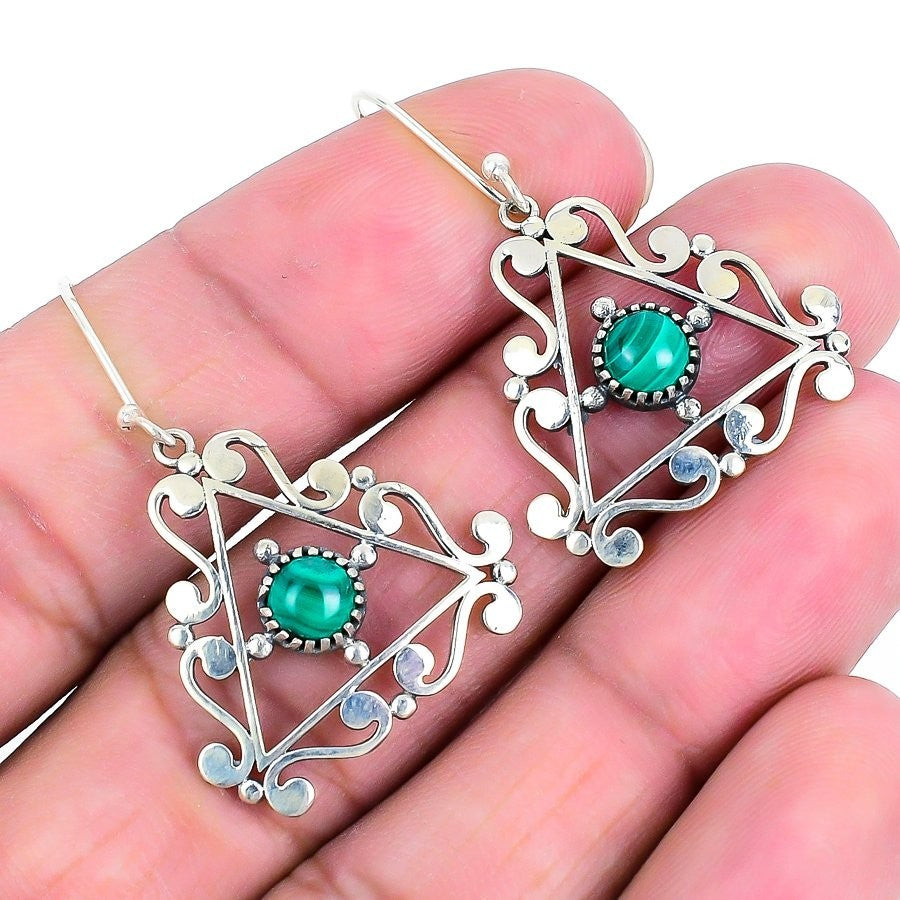 Malachite Gemstone 925 Silver Daughter Dangle Drop Bezel Hook Earrings Jewelry