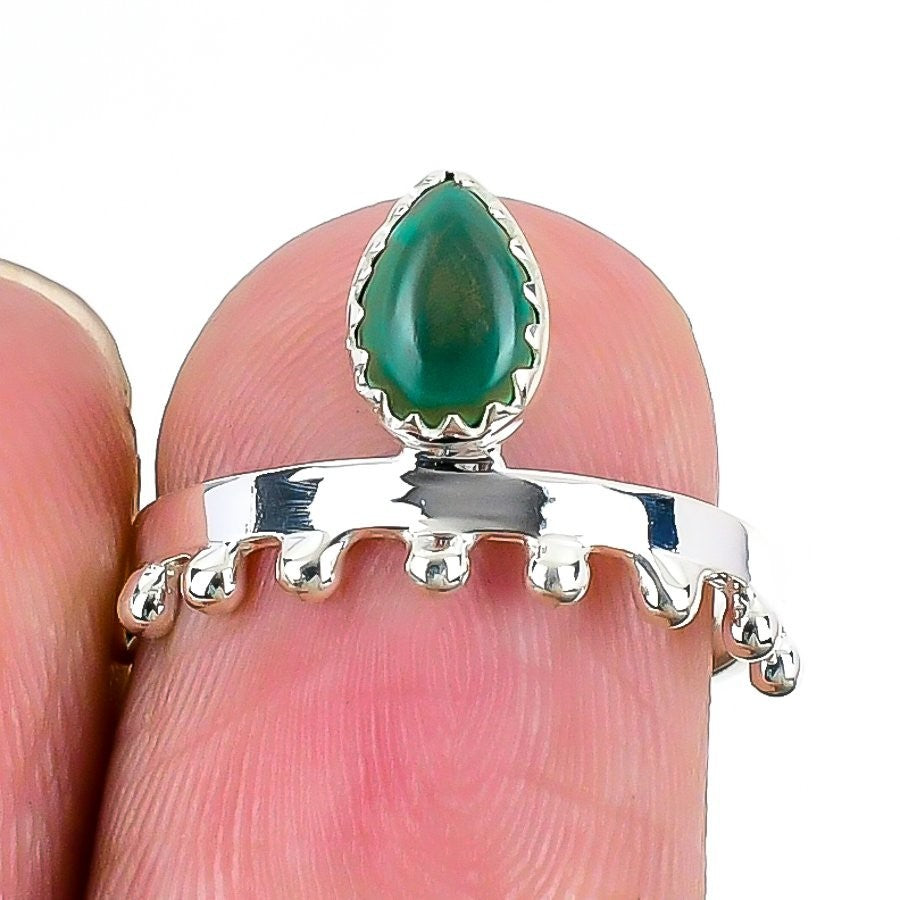 Malachite Gemstone 925 Solid Silver Bezel Statement Heart Chakra Ring Jewelry