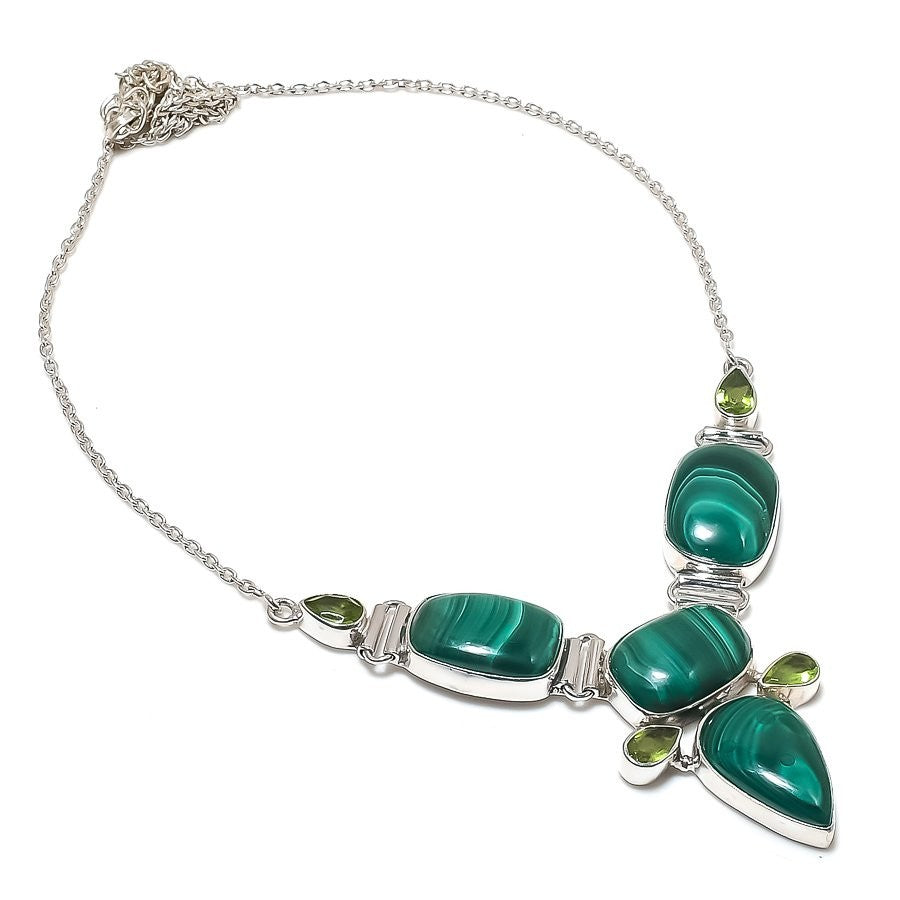 Malachite Gemstone 925 Solid Silver Hook Elegant Chain Ethnic Wedding Necklace