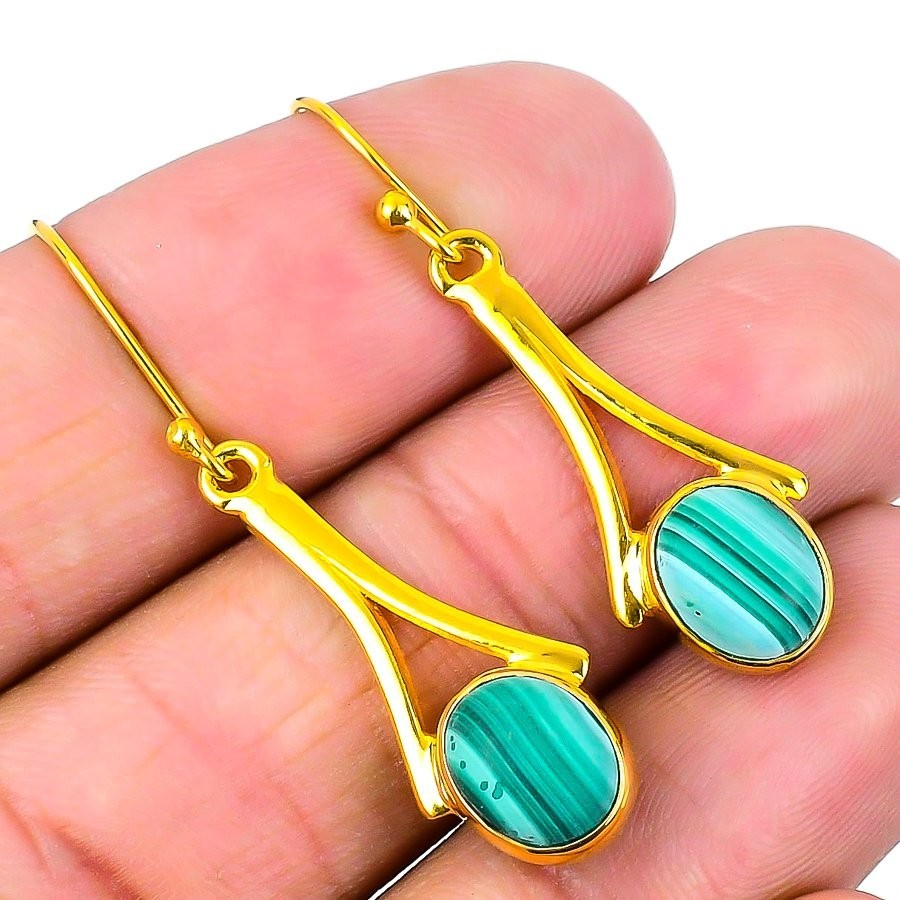 Malachite Gemstone Dangle Drop Hook Heart Chakra Trendy Earrings Sterling Silver