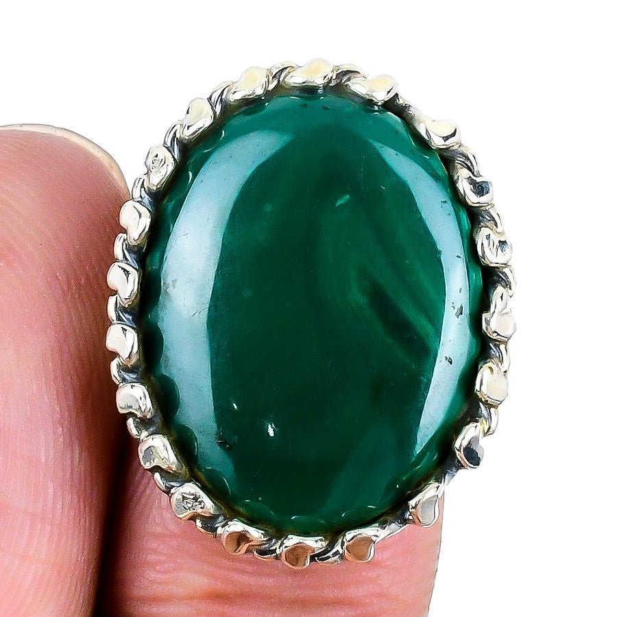 Malachite Gemstone Solid Sterling Silver Art Deco Birthday Statement Ring Size 7