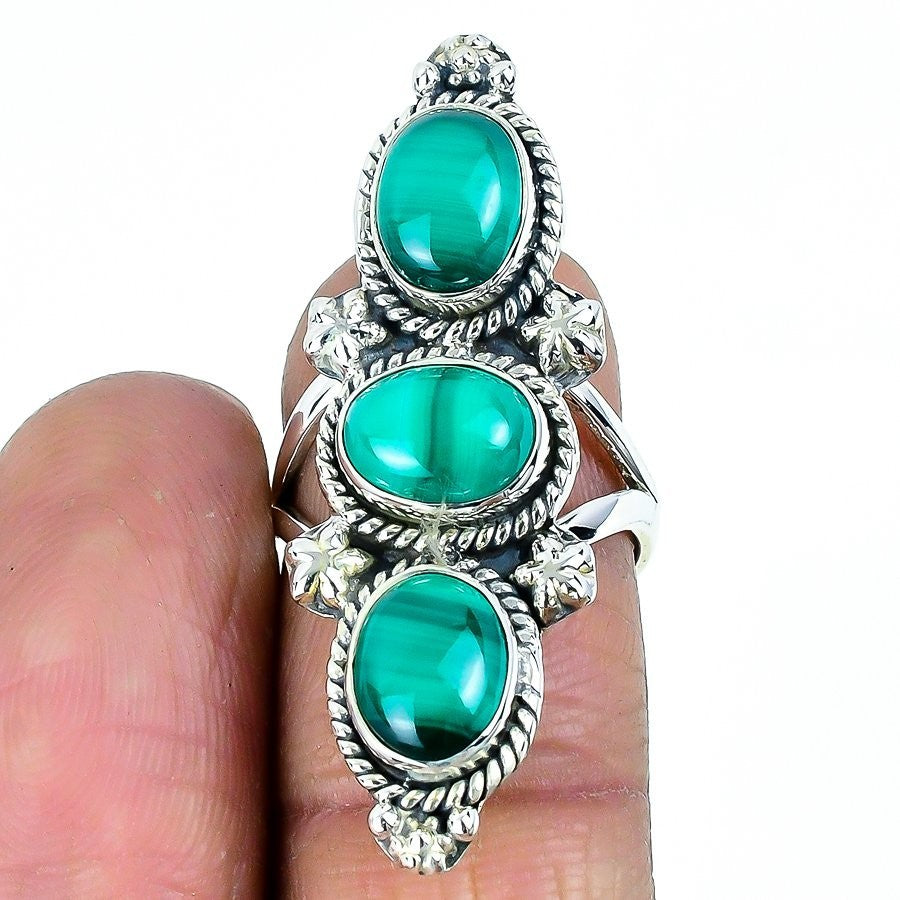Elegant Malachite Gemstone Solid Sterling Silver Wedding Ann