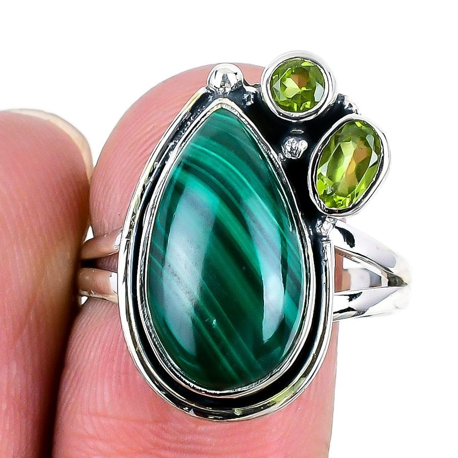 Elegant Malachite Stone 925 Solid Silver Daughter Statement