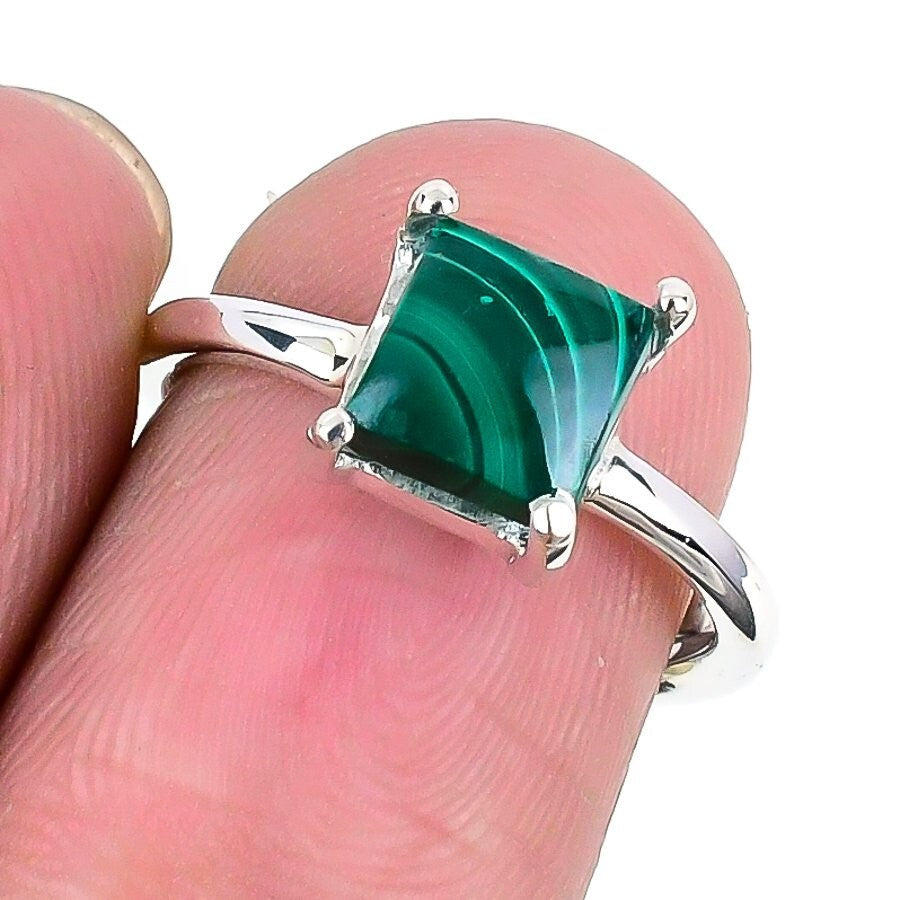 Malachite Stone Artisan Cluster Daughter Heart Chakra Ring Solid Sterling Silver