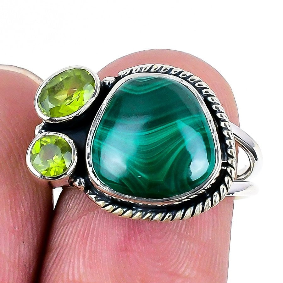 Malachite Stone Mother Channel Set Statement Wedding Boho Ring Size 7 925 Silver