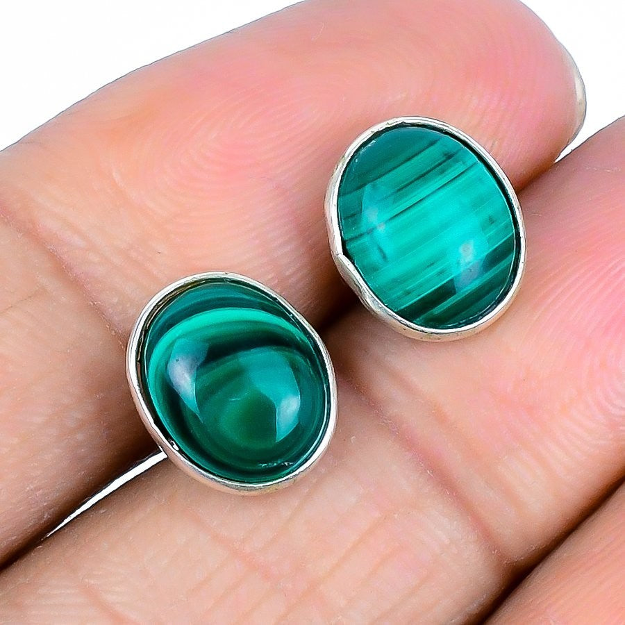 Malachite Stone Solid Sterling Silver Handcrafted Friendship Day Stud Earrings