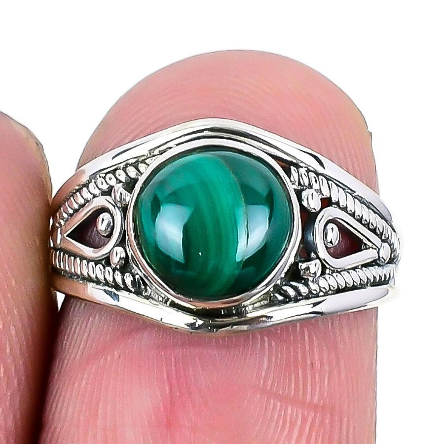 Malachite Stone Sterling Silver Cluster Wife Heart Chakra Elegant Ring Size 5.5