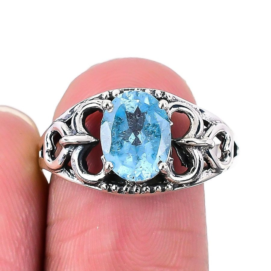 March Aquamarine Gemstone 925 Silver Mother Unique Statement Ring Jewelry US 7.5