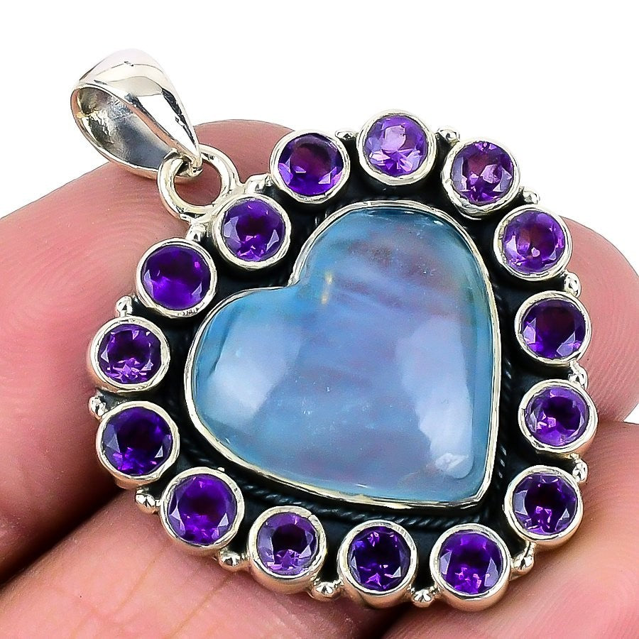 March Aquamarine Gemstone Sterling Silver Trendy Elegant Birthday Sister Pendant