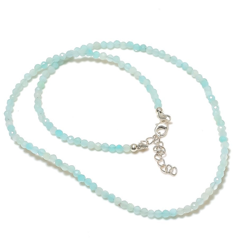 March Birth Aquamarine Faceted Gemstone 925 Silver Wife Chain Handmade Necklace