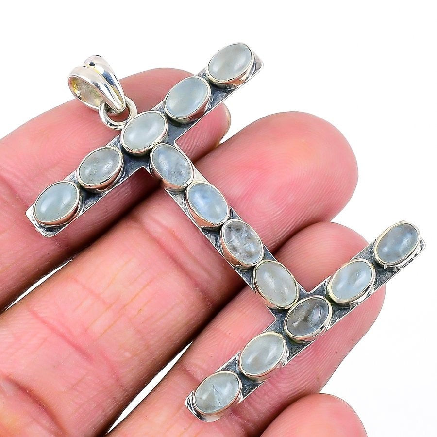 March Birth Aquamarine Stone 925 Sterling Silver Boho Wedding Pendant Jewelry