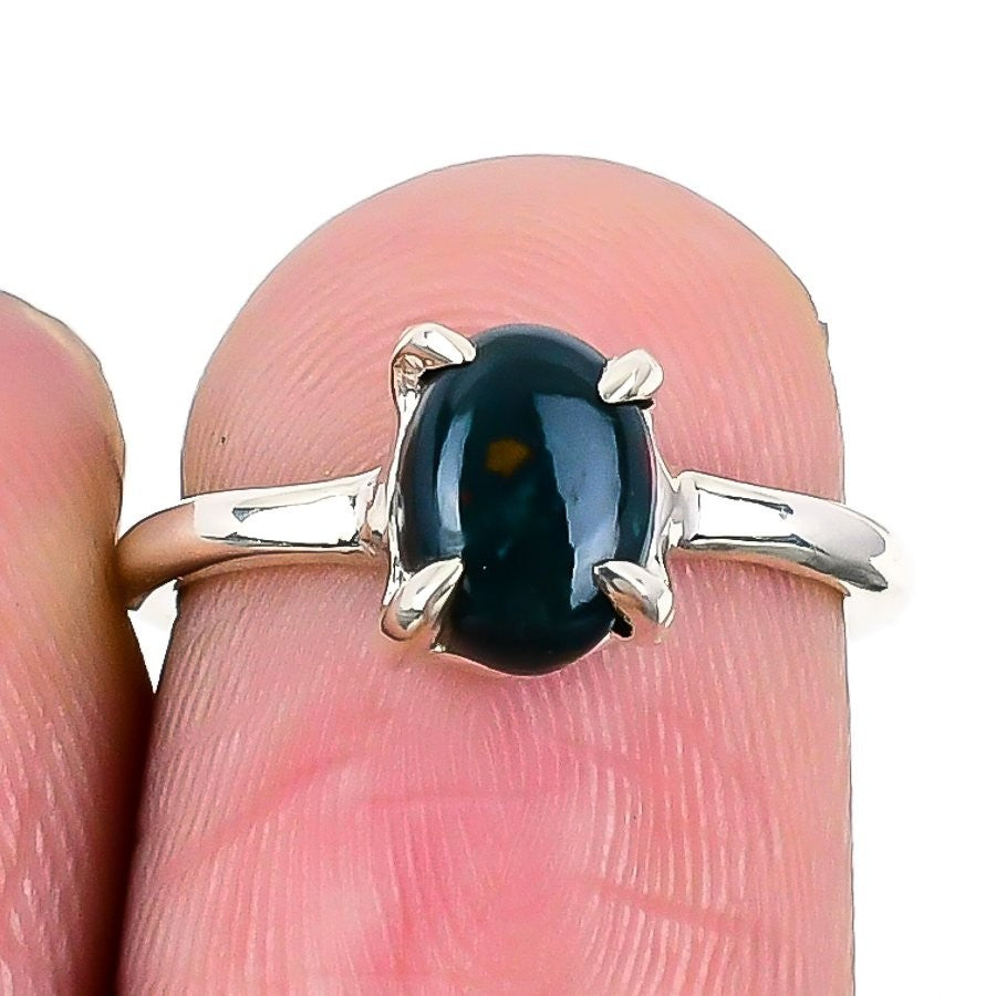 March Birth Natural Bloodstone 925 Sterling Silver Cluster Unique Ring Jewelry