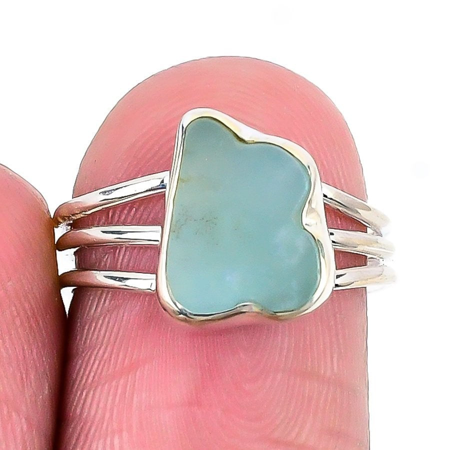 March Natural Aquamarine 925 Solid Silver Art Deco Wife Statement New Ring US 6
