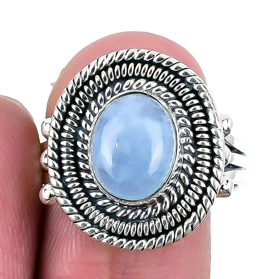 March Natural Aquamarine Sterling Silver New Statement Handmade Anniversary Ring
