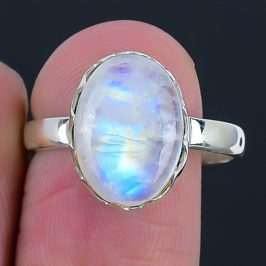 Memorial Day Sale rainbow Rainbow Moonstone Gemstone 925 Silver New Cluster Ring