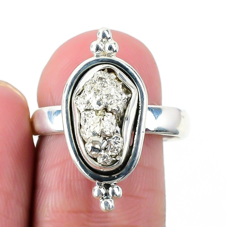 Meteoroid Stone 925 Sterling Silver Statement Sister Engagement Ring Size 7.5