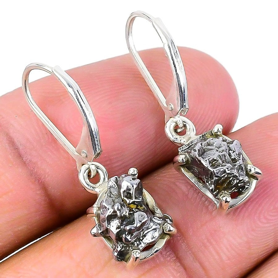 Meteoroid Stone 925 Sterling Silver Wedding Drop Dangle Hook Earrings Jewelry