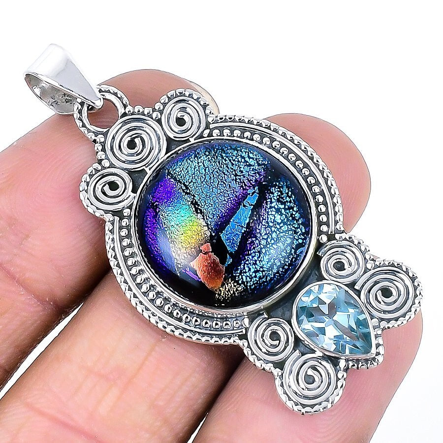 Mexican Dichoric Glass Gemstone Daughter Pendant Jewelry Solid Sterling Silver