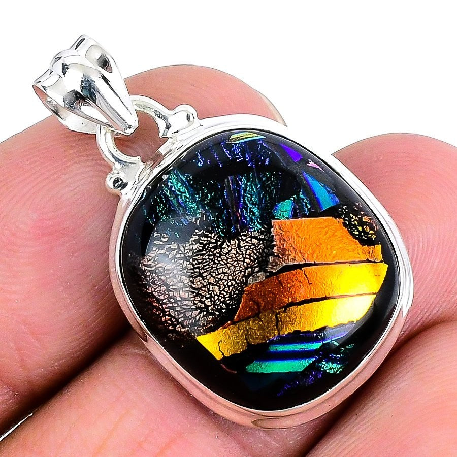 Mexican Dico Glass Gemstone 925 Silver Daughters Day Bezel Boho Pendant Jewelry